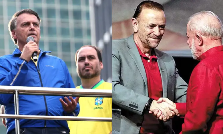 De um lado Jair e Carlos Bolsonaro, do outro, Edinho Silva, presidente do PT, e Lula. Foto: Reprodução