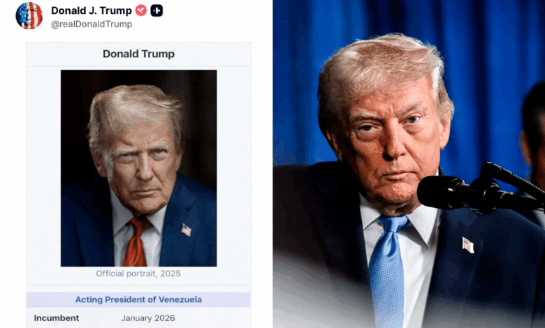O presidente dos Estados Unidos, Donald Trump, publicou na noite do último domingo (11), na rede Truth Social, criada por ele para se comunicar com a extrema-direita, uma imagem que o apresenta como “presidente em exercício da Venezuela”.