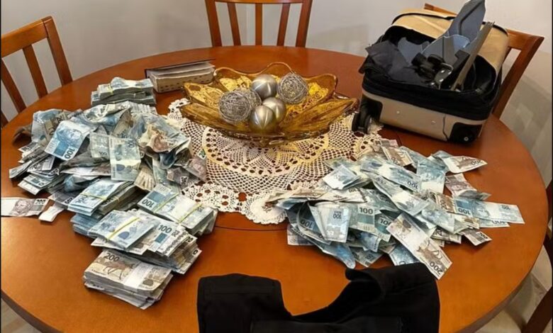 Segundo a Polícia Federal, foram recolhidos R$ 429 mil espalhados no chão após a mala com dinheiro ser arremessada pela janela.