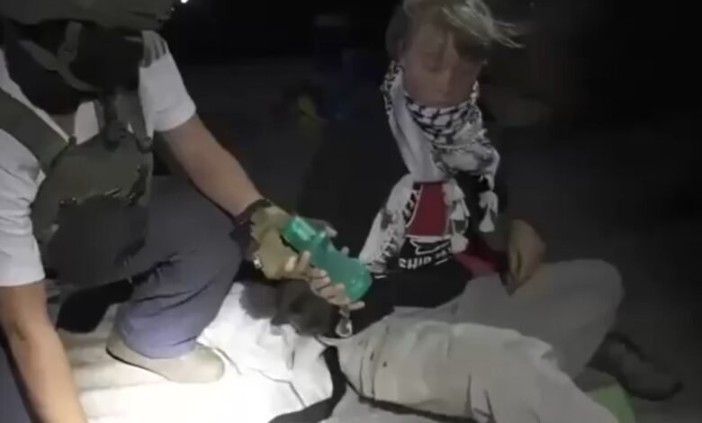 No vídeo, Greta é vista sentada no chão recolhendo seus pertences. Segundo a publicação, “vários navios da flotilha Hamas-Sumud já foram parados com segurança e seus passageiros estão sendo transferidos para um porto israelense”.