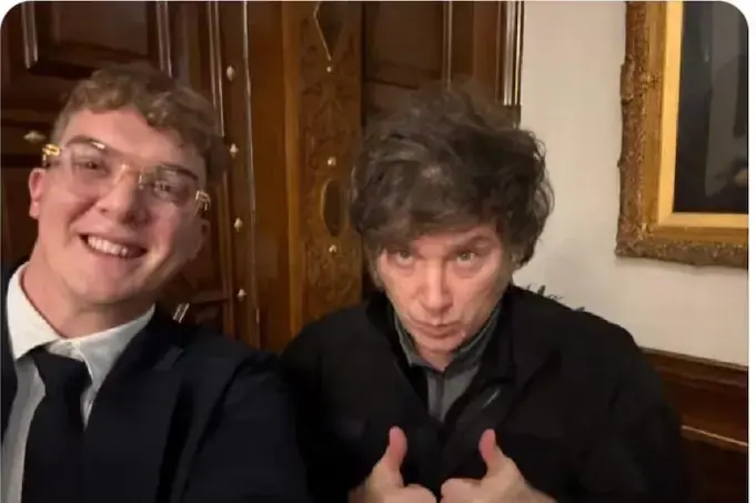 Hayden Mark Davis, criador da $LIBRA, e Javier Milei, presidente da Argentina, em encontro na Casa Rosada, sede do governo. Foto: reprodução