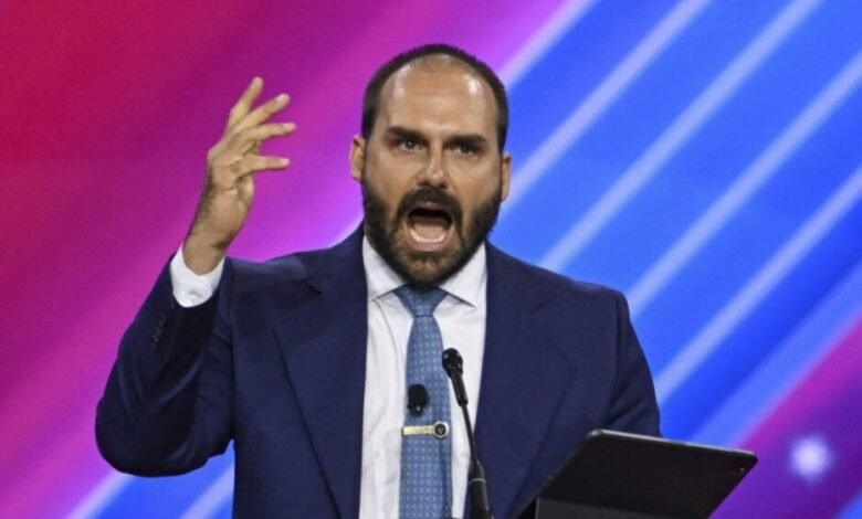 O deputado Eduardo Bolsonaro (SP) avalia deixar o PL em meio a disputas internas e questionamentos sobre recursos partidários. O deputado federal, que está nos Estados Unidos desde fevereiro, tem alegado insatisfação com a falta de estrutura de comunicação para manter sua articulação política internacional.
