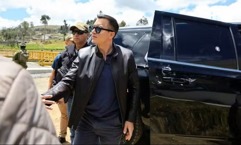 O presidente do Equador, Daniel Noboa, sofreu um atentado nesta terça-feira (7) na província de Cañar, região central do país. O ataque ocorreu quando o carro presidencial chegava a um evento público e foi promovido por um grupo estimado em 500 pessoas, segundo o governo. A ministra de Energia, Inés María Manzano, afirmou que Noboa não se feriu e classificou o episódio como “tentativa de assassinato”.