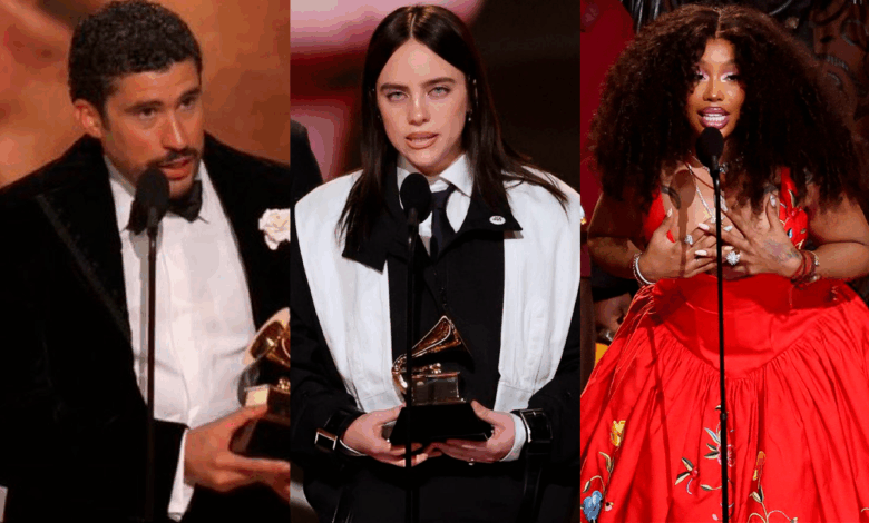 Billie Eilish, ao vencer canção do ano, afirmou: “É muito difícil saber o que dizer ou fazer agora. Ninguém é ilegal em terras roubadas. Precisamos continuar lutando, falando e protestando. Nossas vozes importam, e as pessoas importam”. “Foda-se o ICE”, disse ao ser ovacionada.