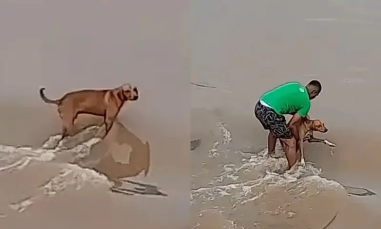 A prima explicou a situação na legenda do vídeo. “O rio começou a encher… o doguinho estava tentando atravessar mas ali não deu conta nem de retornar e literalmente começou a pedir ajuda”, escreveu. Gilmar desceu até o local e enfrentou a correnteza. “Ele achou que daria pra passar e, nisso, ficou sem saída, pedindo socorro. Eu cheguei no momento em que ele estava gritando e o salvei”, contou.